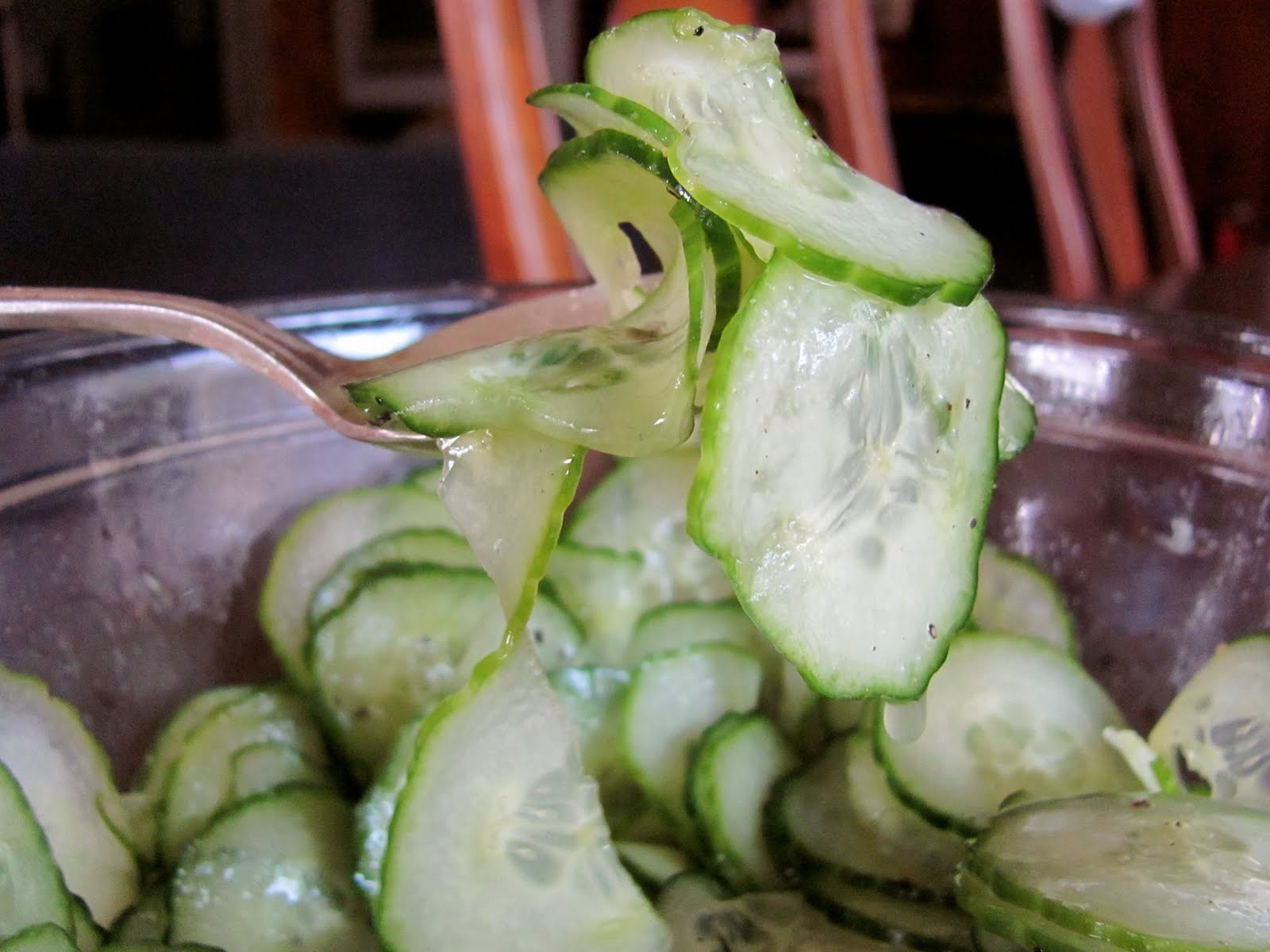 Cucumbers dressed in a simple vinaigrette