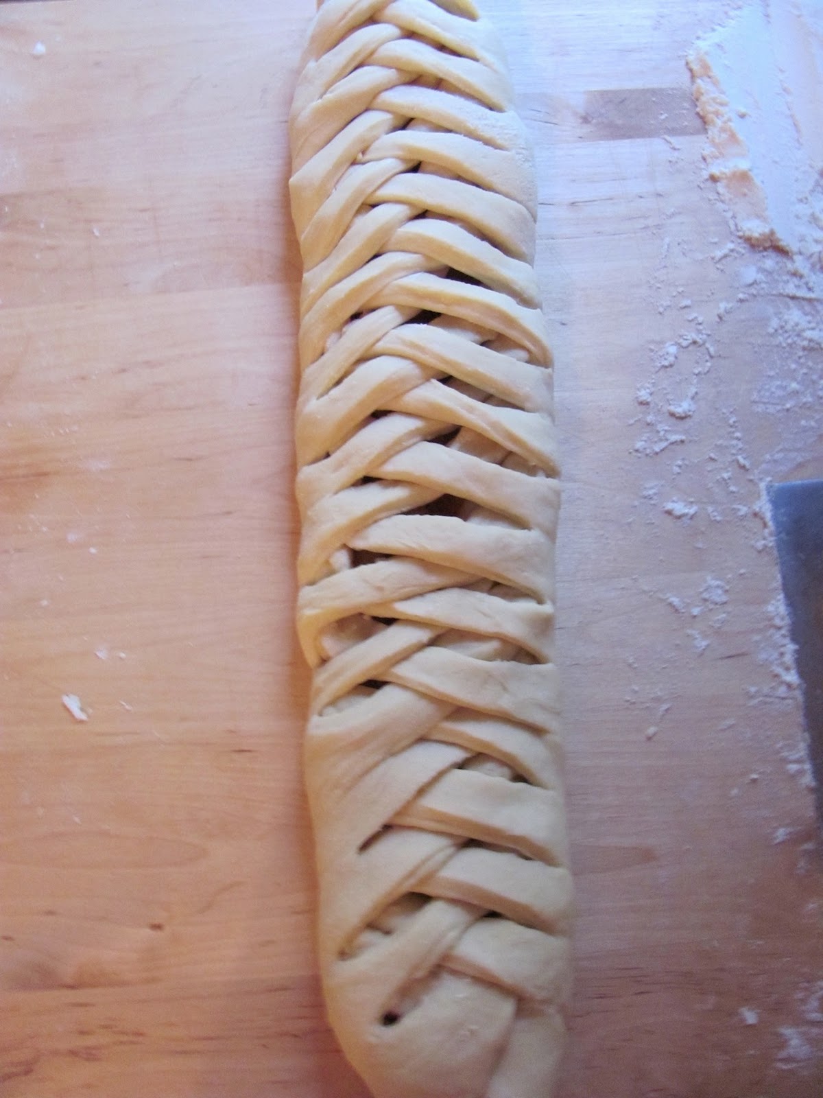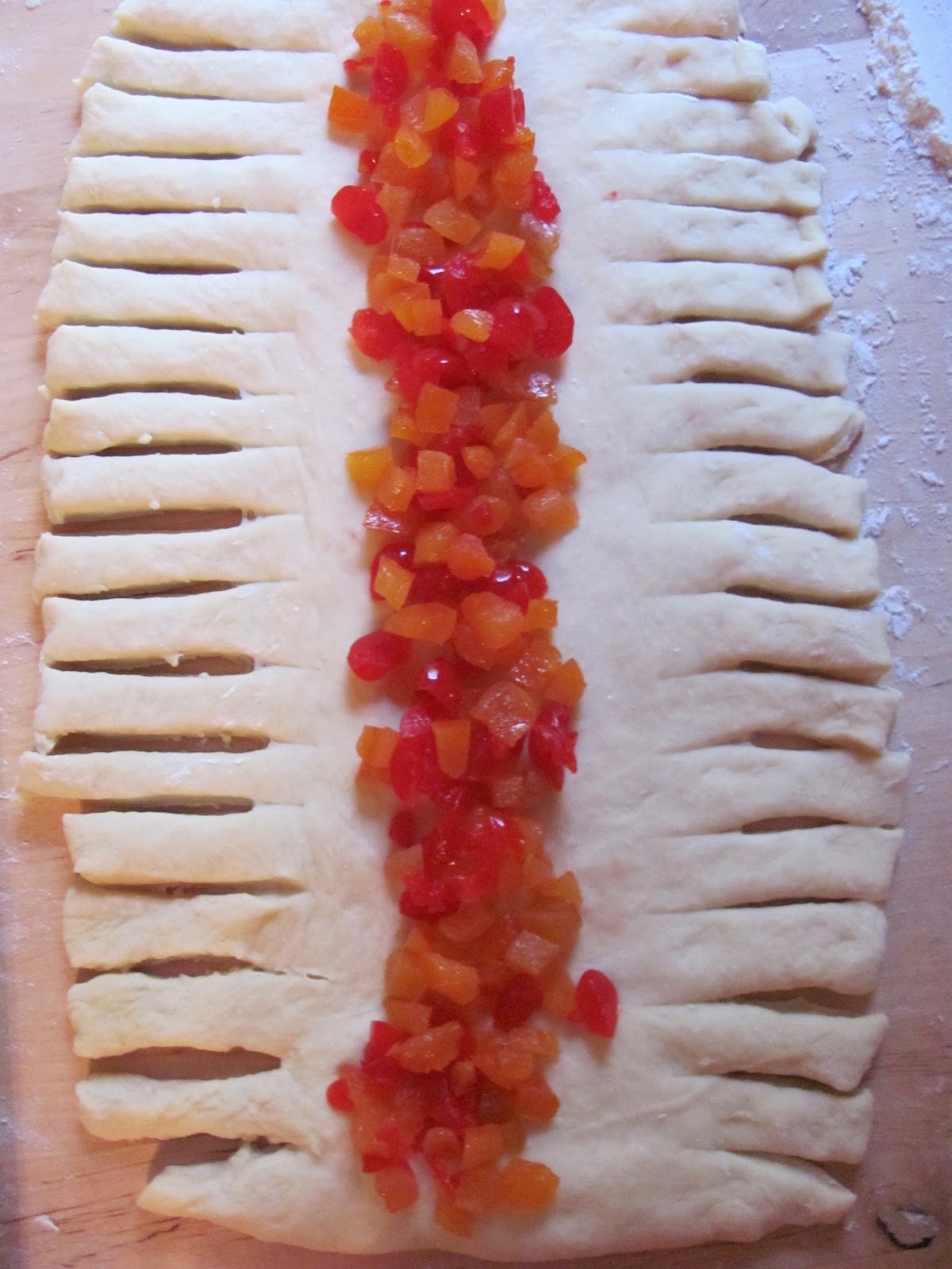 Making Rachel’s Bread, a braided breakfast or coffee bread, is the one tradition I manage to continue from year to year. Rachel taught me how to make it in her mother’s kitchen. She showed me how to fake a braid and turned me on to dried apricots. She also showed me that a little Christmas kitsch with maraschino cherries and white icing is a good thing.