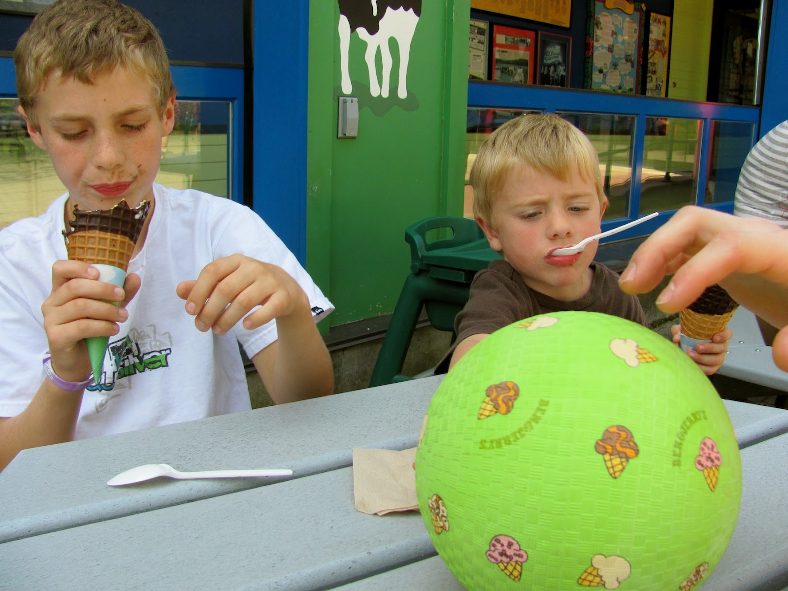 Except maybe this past weekend. With my nephews. And the man in my life. And obscene quantities of frozen sweet cream that no 5-year-old, 10-year-old or 30-something-year-old has any business ordering. Servings larger than some of our heads. Servings that would later be regretted by a few of us.