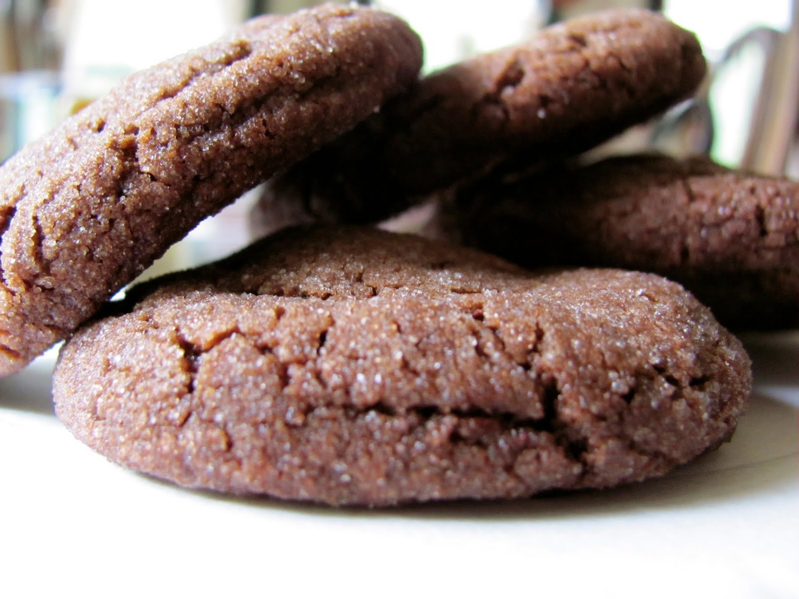I woke up today wanting to bake (and eat) a chewy chocolate cookie reminiscent of the old-fashioned, made-by-grandma, touch-of-molasses, sugared-exterior cookie of my imagination. See, neither of my grannies nor my mom ever made me chocolate cookies like these, but I know I had them somewhere.